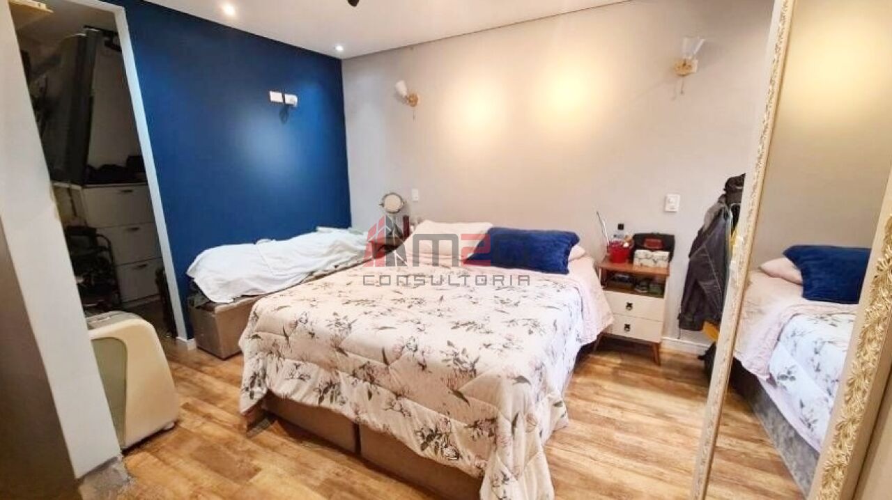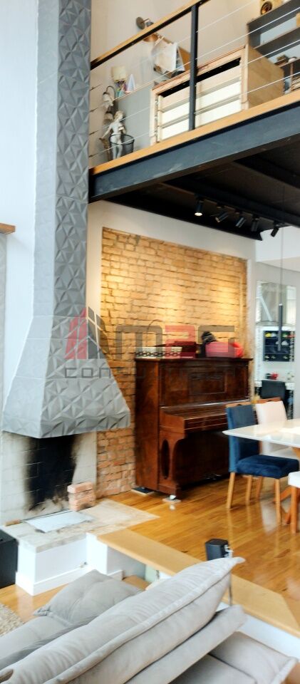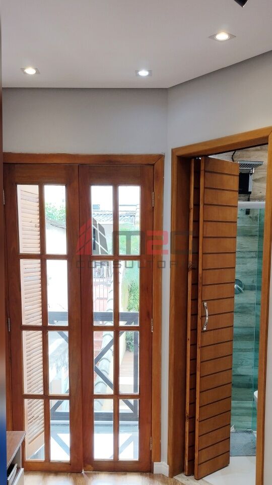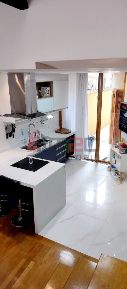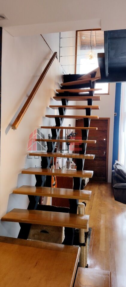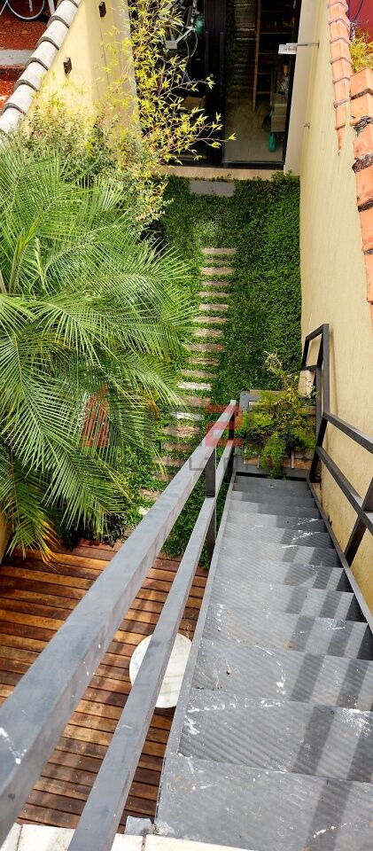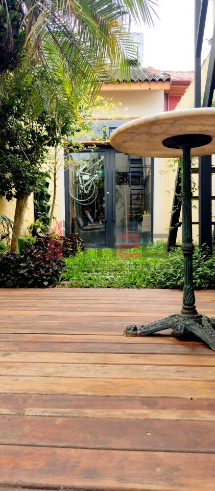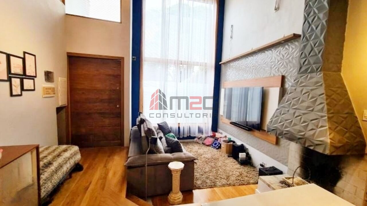 Sobrado moderno com 150m² AC, 148m² de terreno, 2 vagas - 3 dormitórios sendo: 1 suíte máster com closet e varanda, 1 suíte simples, 1 suíte de hospedes na edícula, 1 dormitório - Lavabo/WC social - Sala de estar com pé direito duplo - Sala de jantar - Lareira - Adega subterrânea com 2,5m² - Cozinha integrada com sala - Lavanderia - Jardim - Mezanino com escritório - Terraço gourmet com churrasqueira na parte superior da casa.